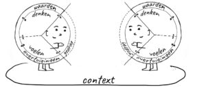 Deze gedragingen worden gevoed door de gedachten en gevoelens, overtuigingen en waarden. Dat gebeurt veelal op een onbewust niveau.