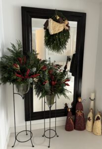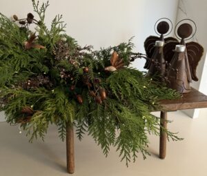 Het maken van kerststukken, guirlandes en kransen is mijn geliefde bezigheid in deze tijd van het jaar. Creëren en mediteren tegelijkertijd.